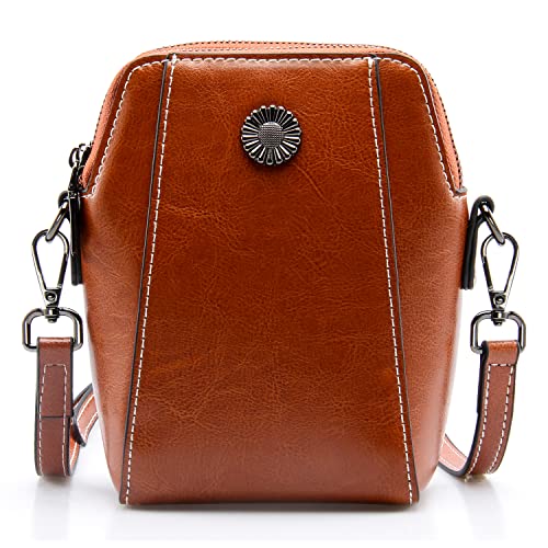 Designer Leather Small Crossbody Bags Purses for Women Cell Phone Bag Soft Women's Shoulder Handbags Gifts for Women (Brown)