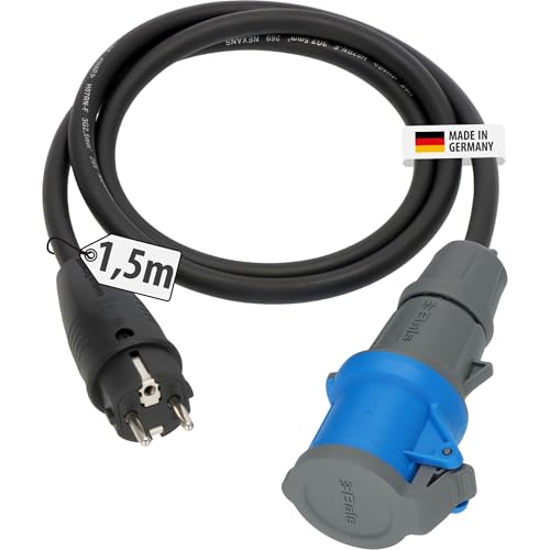 Meister CEE-adapterkabel – 1,5 m kabel – CEE-koppling och säkerhetskontakt – robust gummikabel H07RN-F3G 2,5 mm² – 16 A/230 V – IP44 utomhus/campingkabel/campingadapter/7425280