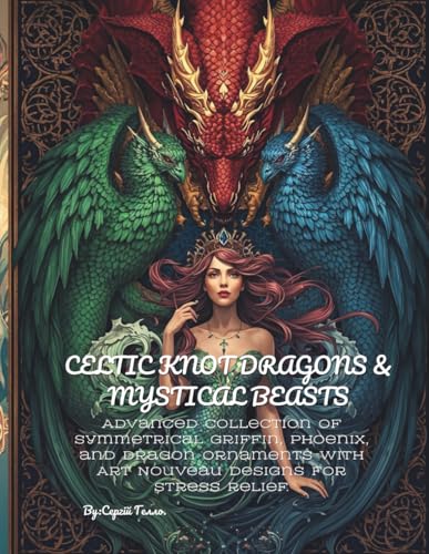 Celtic Knot Dragons & Mystical Beasts Coloring Book: Advanced Collection of Symmetrical Griffin, Phoenix, and Dragon Ornaments with Art Nouveau Designs for Stress Relief.
