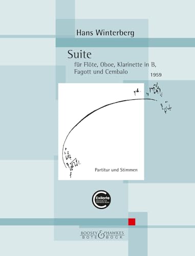 Suite: für Flöte, Oboe, Klarinette in B, Fagott und Cembalo. flute (piccolo), oboe, clarinet in Bb (bass clarinet in Bb) and harpsichord. Partition et parties.