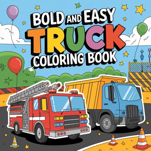 Bold and Easy Truck Coloring Book: 50+ Various Model Bold Trucks For Boys | Fire Truck | Dump Truck | Milk Truck | Fuel Truck | Pick Up | Cement Mixer | Stone Crusher Truck and many more