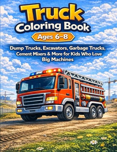 Truck Coloring Book for Kids Ages 6–8: Dump Trucks, Excavators, Garbage Trucks, Cement Mixers & More for Kids Who Love Big Machines
