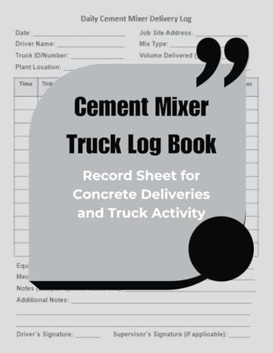 Cement Mixer Truck Log Book: Record Sheet for Concrete Deliveries and Truck Activity