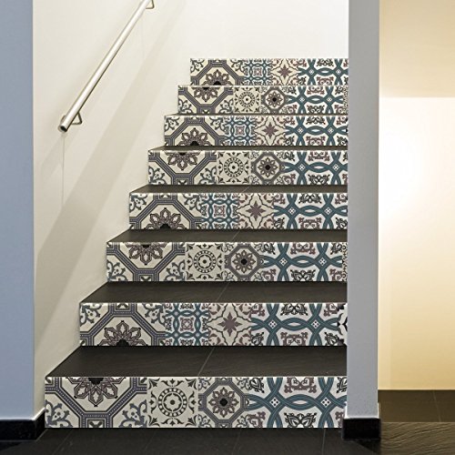 6 självhäftande dekaler trappplattor | klistermärken kontrmarche cementplattor – klistermärken kontrmarche kakel – azulejos – 15 x 105 cm – 6 ränder