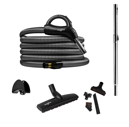 HouseVac Tillbehörsset, tillbehörssats, 8 delar, centraldammsugare, slang, 12 m, teleskoprör med klämborste är lämplig för hårda golv som parkett, trägolv, laminat och kakel