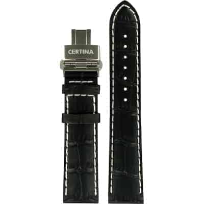 Certina DS Podium Svart Läderarmband med lås 20 mm
