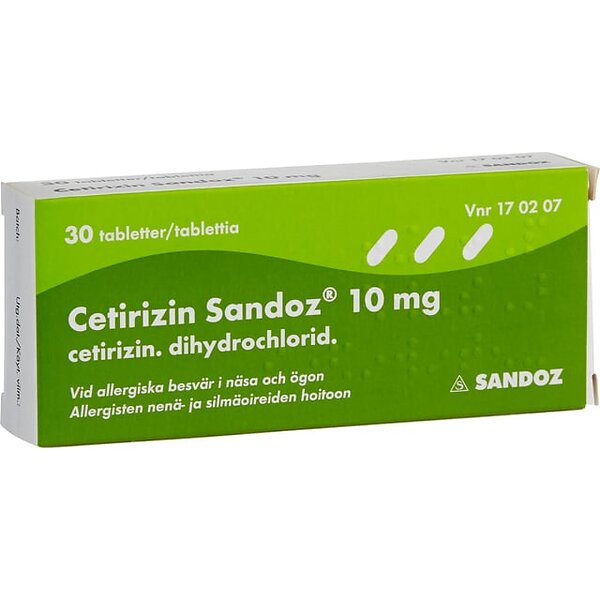 Cetirizin Sandoz, filmdragerad tablett 10 mg 10 st
