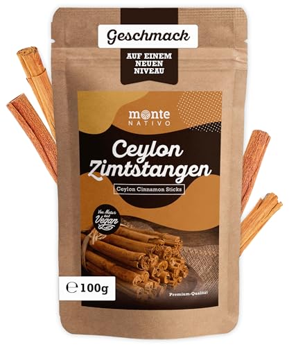 Ceylonkanelstänger Monte Nativo (100 g) - Aromatisk Ceylonkanel hel - Som Krydda eller Kanelstång dekoration - Kanelstänger ätbara, perfekta för glögg och vinterte - Julkryddor - Cinnamon sticks
