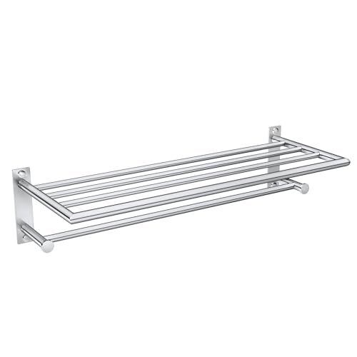 Moen Y5794CH Arlys 24-Inch Wide Modern Bathroom Hotel-Style Storage Shelf with Towel Bar, Chrome