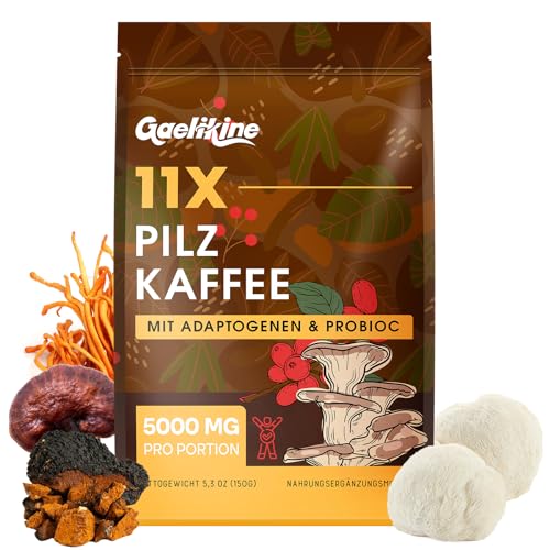 Mushroom Coffee, 11-Svampsmix Med Adaptogener Och Probiotika, Instant-Arabicakaffe Med Lion’s Mane, Chaga, Reishi, Cordyceps Och Mer, Svampextraktpulver, 150 g