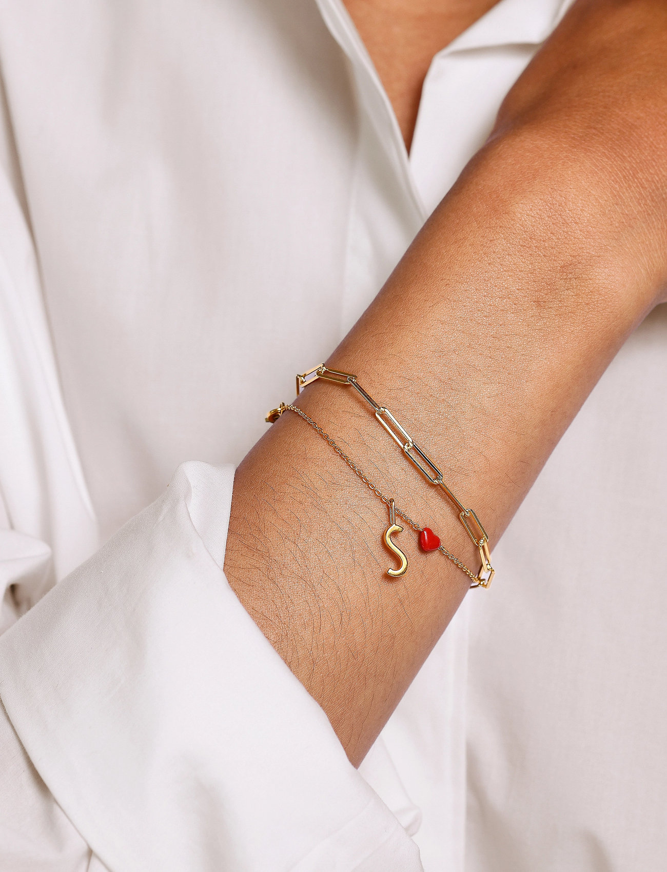 Design Letters Chunky Square Link Chain Small Bracelet - Gold Plated - Gold - ONE SIZE