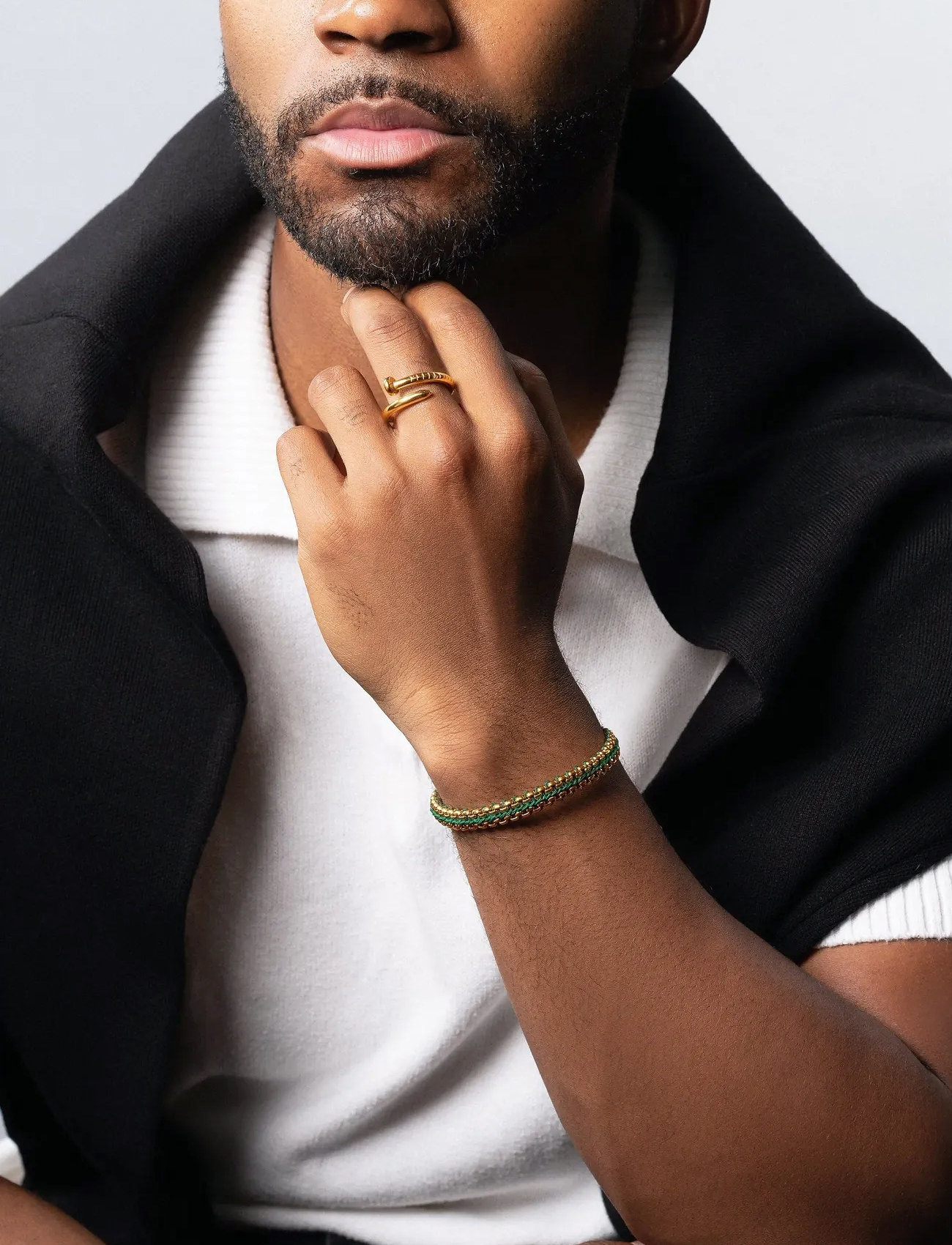 Nialaya Men's Green Woven 8Mm Box Chain Bracelet In Gold - Gold - M