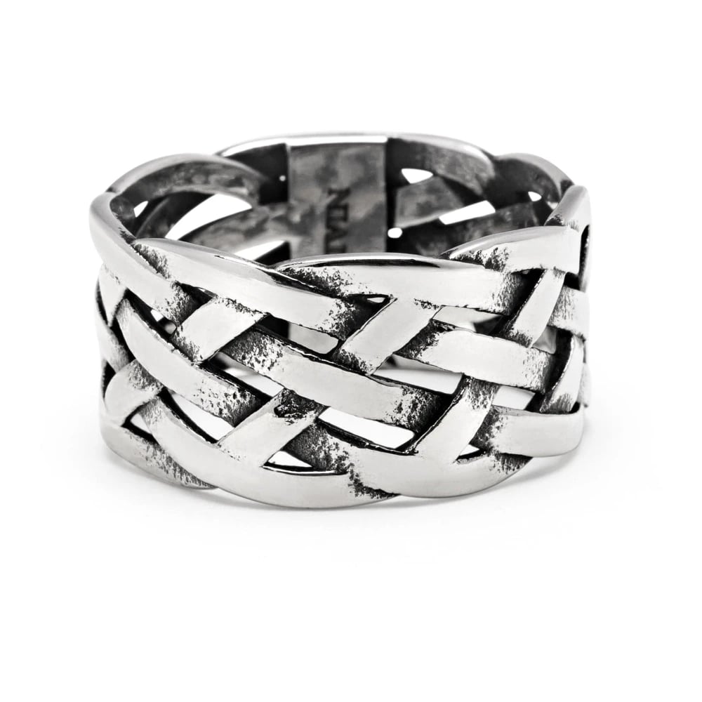 Nialaya, Accessoarer , Herr, 58 MM, Men's Stainless Steel Woven Chain Ring