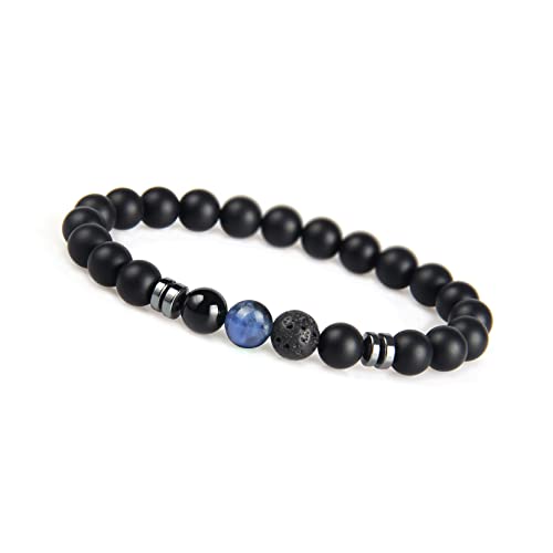 GD GOOD.designs EST. 2015 Armband-chakra energipärlor för kvinnor och män, halvädelsten 8mm matt onyx, Onyx skyddssten - 8mm pärla (blå)