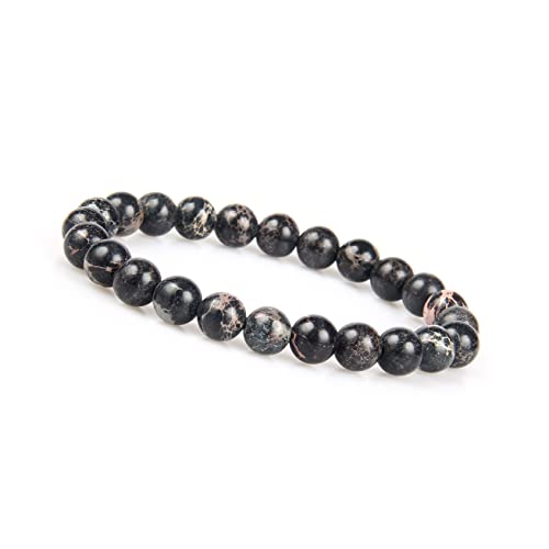 Mäns armband med chakrapärlor I Jasper mäns pärlband för kvinnor och män I Stretchable Chakra Bracelet med äkta naturstenar (Svart)