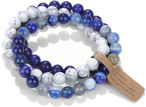 SAIBANGZI Handgjorda Äkta Naturstenspärlor Armband, Helande Stenar, Unisex Chakra, 8 mm Runda Ädelstenar, Elastiskt Yoga Anti-Stress Armband, Eine Grösse, Sten, Agat