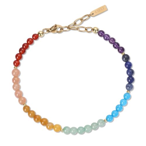 COAI Chakra armband för kvinnor med naturliga kristaller, 7 chakras naturstenar armband för kvinnor, 17+3cm, Sten, Chakra