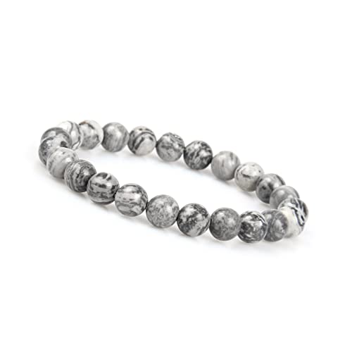 Mäns armband med chakrapärlor I Jasper mäns pärlband för kvinnor och män I Stretchable Chakra Bracelet med äkta naturstenar (Grått)