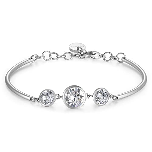 Brosway Armband Chakra für Damen aus aus Edelstahl mit Kristallen in der Farbe Silber mit Karabinerverschluss, Länge: 18,5 cm, BHKB036