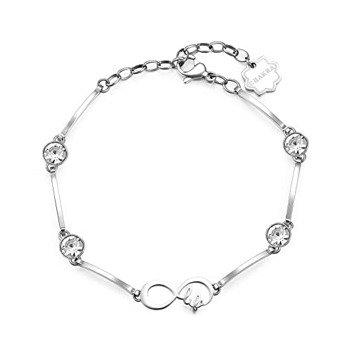 Brosway Armband CHAKRA mit Unendlichkeitssymbol für Damen aus Edelstahl mit Kristallen in der Farbe Silber mit Karabinerverschluss, Länge: 185 mm, BHKB029