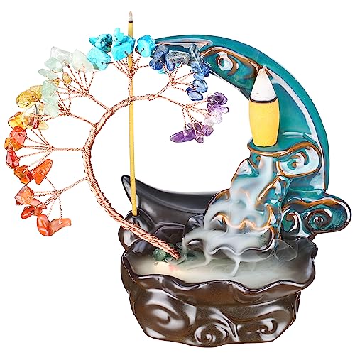 Rökelse vattenfall måne återflöde rökelsebrännare keramisk rökelsehållare 7 chakran kristall träd rökelsehållare namaste yoga meditation och heminredning