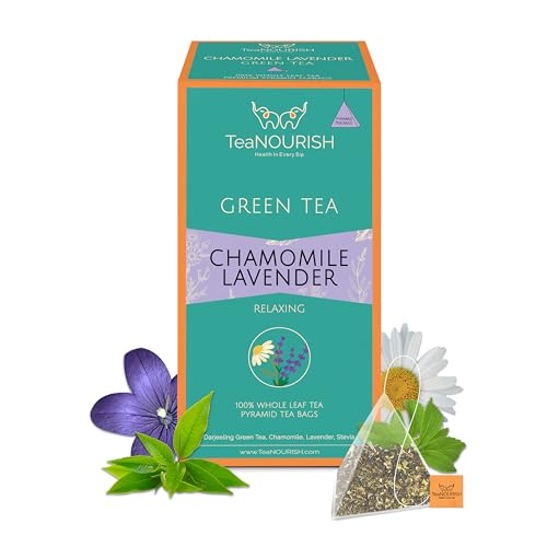 TeaNOURISH Chamomile Lavender Green Tee | 20 Count Pyramid Tea Bags | Whole Leaf Tee | Calming & Relaxing Chamomile Sleep Tea | Bedtime Tea | 100% NATURAL INFUSION