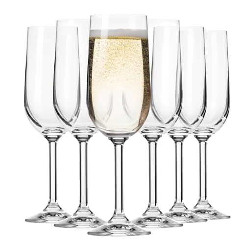 Krosno Champagne & Mousserande Vinglas GEMA | Klassisk design | Set om 6 | 210 ml | Bred skål | Transparent | För hem, restaurang & fester | Tål maskindisk | Blyfritt kristallglas