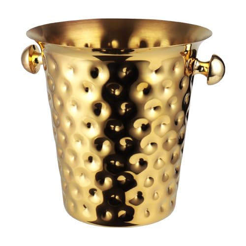 Rying Ice hink - Champagne hink hamrad - rostfritt stål med handtag, metallhink för champagne, vin, drycker, 5 l (Guld)