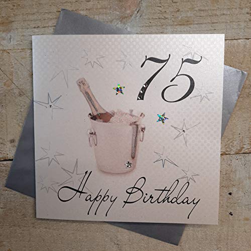 White Cotton Cards Ålder 75 handgjord champagne-hink födelsedagskort, vit