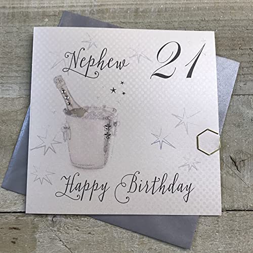 vita bomullskort champagne hink, brorson 21 glad handgjord 21-födelsedagskort, vit, WBS21-N