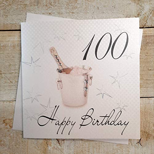 White Cotton Cards Ålder 100 handgjort champagne-hink födelsedagskort, vit