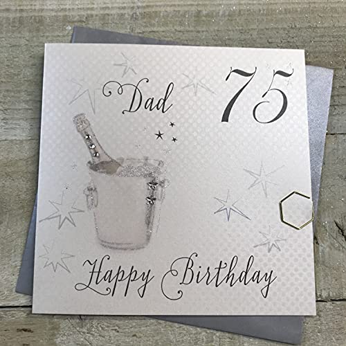 vita bomullskort champagne hink, pappa 75 glad handgjord 75:e födelsedagskort, vit, wbs75-d