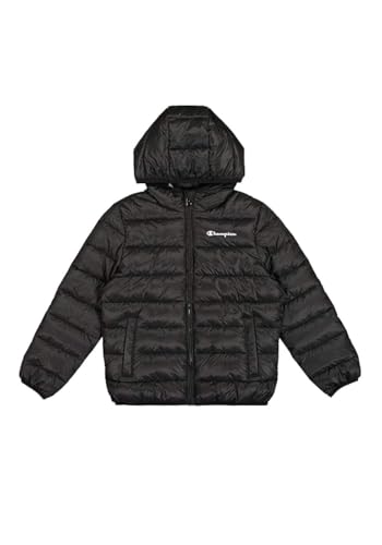 Champion Legacy Outdoor B (306868) - WR Light Cirè 40gr S Script Logo Hooded Jacka, Svart/Rosa (NBK), 15-16 år (XXL) Unisex - Barn FW24, Svart/Rosa (NBK), 15-16 anni