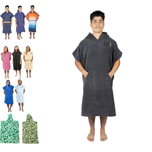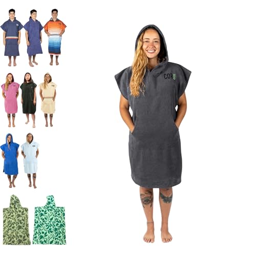 Cor Surf Poncho Changing Towel Hooded Robe Front Pocket Thick Quick Dry Microfiber Wetsuit Poncho Towel for Surfing Beach Pool Swimming (Large, Dark Grey)