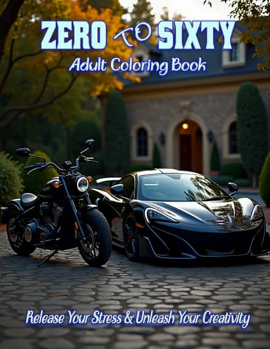 Zero to Sixty Adult Coloring Book: Release your stress and Unleash your creativity: Channel your inner racer with these awesome cars and bikes