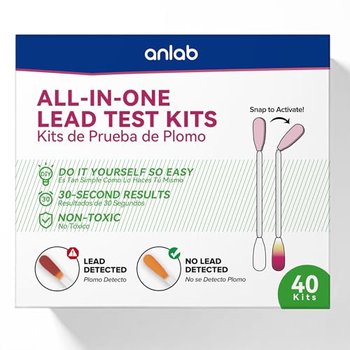 Anlab™ blytestkit | Snabba resultat på mindre än 30 sekunder | Allt-i-ett, ingen vinäger behövs | Kontrollera bly i målade ytor, trä, metall med mera | Mun bomullspinnar