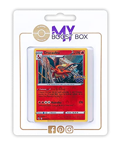 Charizard 10/78 Holo Reverse - Myboost X Sword and Shield 10.5 Pokémon GO - set med 10 franska Pokémon-kort