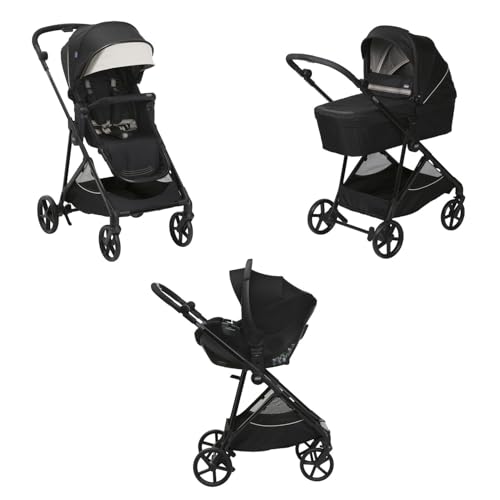 Chicco Trio Seety, barnvagn Seety med ultralätt chassi, bred och vadderad bilstol Kory Essential I-storlek, lätt och kompakt modulsystem, 0 månader – 4 år