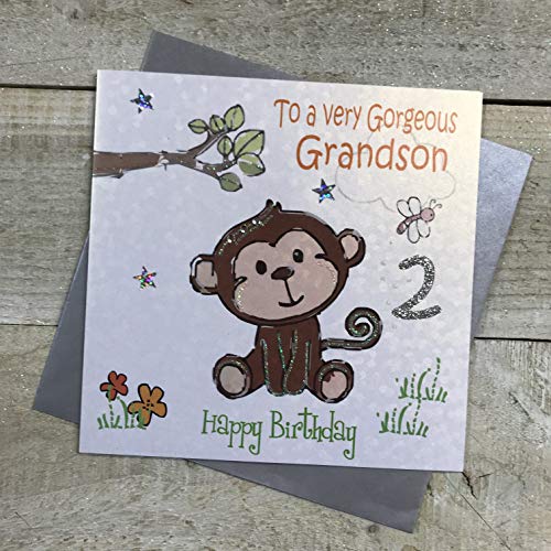 vita bomullskort Cheeky Monkey, To A Very Gorgeous Grandson 2 Happy Handgjord 2:a födelsedagskort, vit, GL224-2