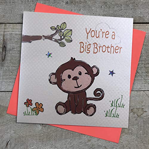 Vita bomullskort Cheeky Monkey You're a Big Brother handgjort nytt babykort, GL226