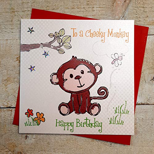 White Cotton Cards Lyckligt, handgjort födelsedagskort (Cheeky Monkey)