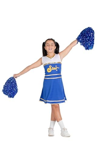 Ciao Cheerleader utklädnad för flickor (storlek 8–10 år) med pom poms, blå