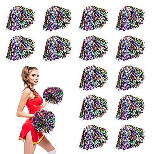 16 stycken cheerleader poms, cheerleading pom poms med handtag, handblommor metall folie cheers-boll, cheer poms, cheerleading pom poms för sportevenemang bollspel danser karnevalfester används