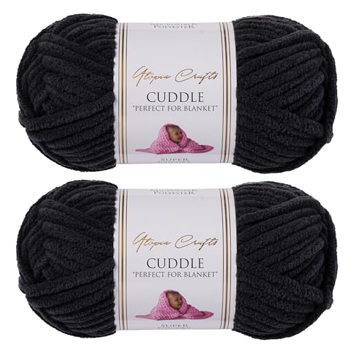 Utopia Crafts Cuddle Super Chunky Chenille Soft Yarn for Knitting and Crochet 2x 100g (Black)