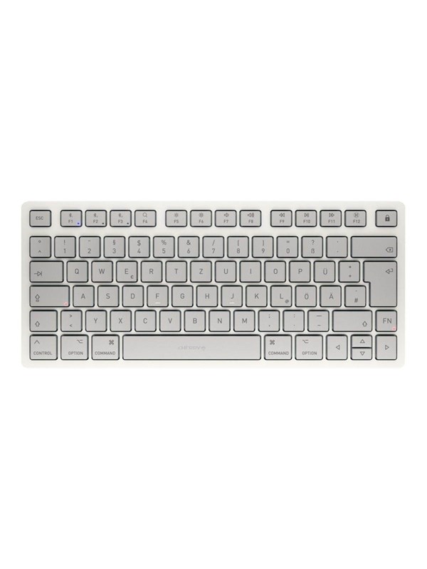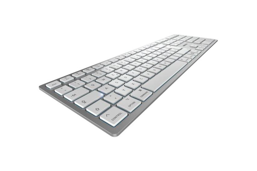 CHERRY KW 9100 SLIM FÖR MAC, trådlöst Mac-tangentbord, tysk layout (QWERTZ), Bluetooth eller 2,4 GHz RF, platta tangenter, uppladdningsbar, silver/vit