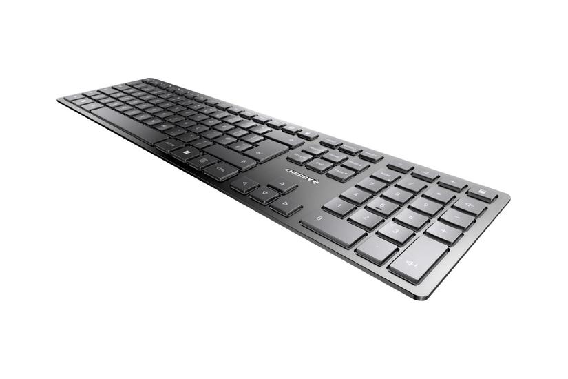 CHERRY KW 9100 SLIM, Trådlöst Designtangentbord, Portugisisk Layout (QWERTY), Val Mellan Bluetooth eller 2,4 GHz, Platta Tangenter, Uppladdningsbart, Svart-Grå