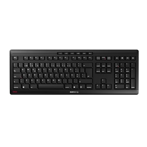 CHERRY STREAM KEYBOARD, Trådbundet Tangentbord, Portugisisk Layout (QWERTY), Tyst Tangenttryckning, Unik Skrivkänsla, Platt Design, Svart