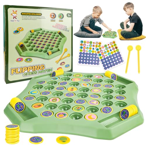 AKONE Flip Chess Minne, 2–4 spelare minnesflip-schackspel, flip board matchande spel för barn, flip-schackminnesspel, Montessori leksak, familj brädspel, minne schack pedagogisk leksak