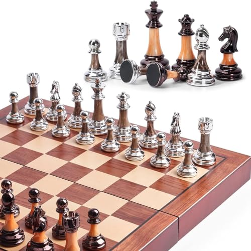 JurciCat Träschack Schack Bärbart vikbart schackbräde Trä Högkvalitativt 3 i 1 schackbrädset Chess Board Set för familjeaktiviteter Fest Vuxna barn Resor