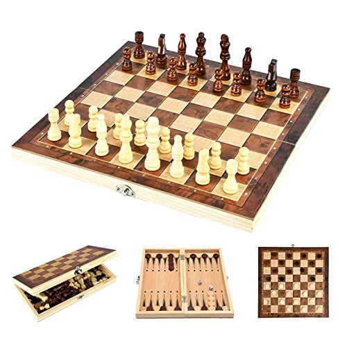YongHang Schack Träschackset 3 i 1 bärbart vikbart schackbräde Schackspel Chess Board Set for Party Family Activities Children Adults Travel